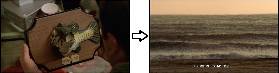 Emily VanDerWerff wonders in her write-up for this episode, “Has any show gotten as much weirdly tragic mileage out of a bit of cultural ephemera so instantly disposable as The Sopranos got out of Billy Bass?” I think it’s possible to get even more mileage out of Billy Bass than VanDerWerff suggested. Tony has clearly associated fish with Big Pussy, but fish have also historically been associated with Jesus Christ (which is the reason why Aaron Arkaway wears a fish-pendant on his lapel). This episode which essentially asks the question “Who will save us from Satan’s power?” closes with an answer that is sadly inadequate: Billy Bass, far from being a representation of Christ, is little more than a bit of disposable pop culture. As the tide rolls in to the desolate beach of Asbury Park and the episode fades out, Kate Jackson and the Campbell Brothers sing, “Jesus told me everything is gonna be alright.” Their repeating lyric may be a tiding of comfort and joy, but—at least in SopranoWorld—it represents a grasp at hope where none might actually exist.