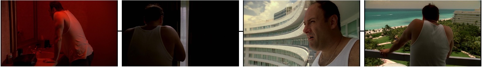 There is a similar “glitch” in the dream sequence at the end. In the first shot of Tony walking away from the car, he is still wearing the grey shirt he was wearing in the car. In the second shot, he is only wearing a singlet. The former fits in more with Tony’s status of mob boss/businessman. The latter more with a stone mason. Does it indicate that Tony is getting closer to his ancestors, and thus Livia?