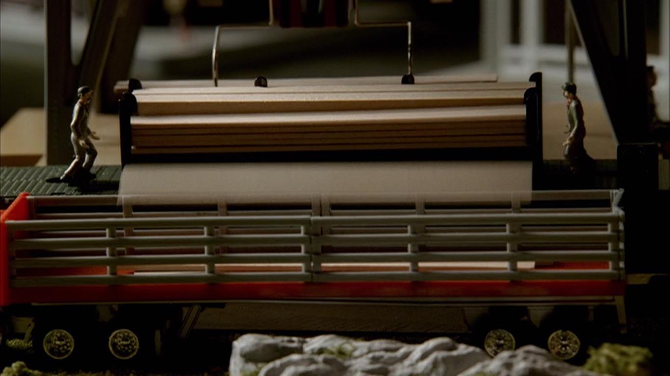 Vito needs to get a job in order to earn some income and keep himself occupied. He has a background in construction, though I’m guessing most of his construction experience over the last few years has consisted of simply sitting around a building site in a lawn chair with his mob buddies (as we saw in last season’s “Unidentified Black Males”). After a life of leisure in the mafia, Vito is no longer suited for honest blue-collar work. I think this a crucially important point, and one that is underscored by the episode title. When Bobby Bacala tells his son, “Check out the Moe n’ Joe action,” he is referring to the Lionel figures performing their blue-collar labor: